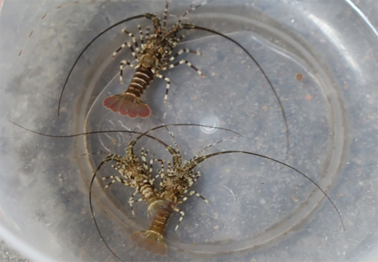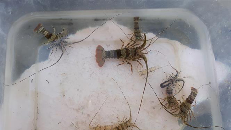Hình ảnh tôm hùm con được ngư dân TP Nha Trang "bẫy" trên vùng biển ven bờ ở Khánh Hòa