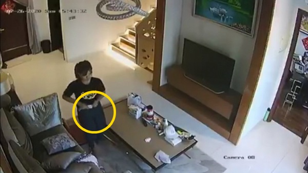 Trong video được chia sẻ có thể thấy, một người phụ nữ được cho là giúp việc mặc áo phông đen, đang dọn dẹp bàn ghế phòng khách, trong khi đó nam chủ nhân ở trong căn phòng ngay cạnh. Ban đầu, nữ giúp việc vẫn đang thu dọn và sắp xếp đồ đạc hết sức bình thường. Tuy nhiên chỉ vài giây sau, cô ta lấy ra một chiếc khẩu trang từ trong hộp đặt trên bàn ra ngoài. Người này nhìn trước ngó sau xem xung quanh có ai không, sau đó nhét chiếc khẩu trang vào trong quần của mình.
