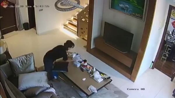 Ngay sau đó, người chủ nhà từ trong phòng bước ra nhưng không hề biết gì về hành động của cô giúp việc. Khi thấy có người, nữ giúp việc có chút giật mình, sau đó cũng nhanh chóng thay đổi thái độ, bình thản cúi đầu tiếp tục dọn dẹp.