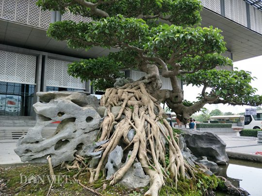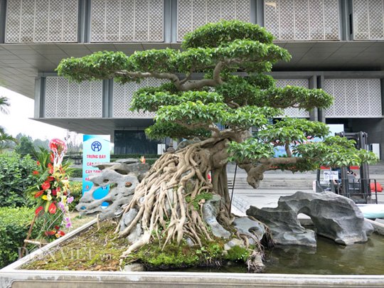Theo đó, bông tán tự nhiên, thân cây uyển chuyển, đặc biệt bộ rễ ôm trọn phiến đá tạo điểm nhấn đặc biệt cho cây. "Cây của tôi đã từng đi dự nhiều cuộc triển lãm và đã có nhiều người trả giá nhưng tôi chưa muốn bán", ông Cường nói.