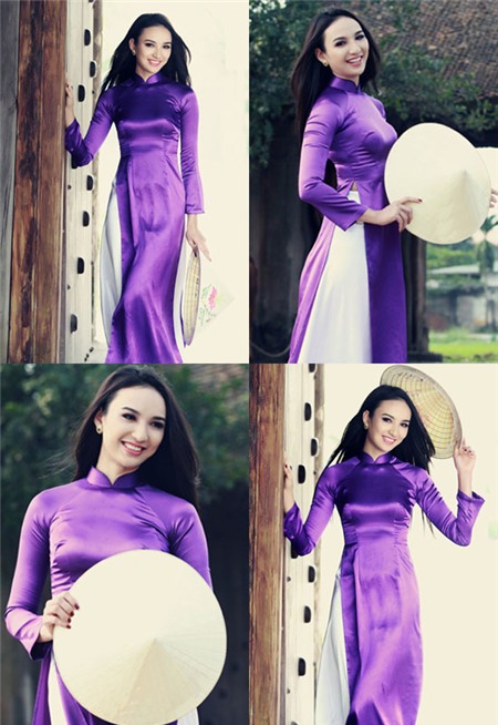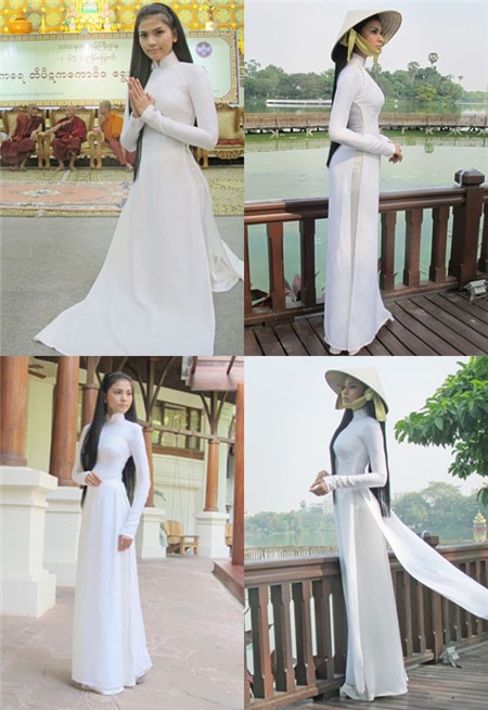 Trương Thị May diện áo dài khoe sắc tại Myanmar.
