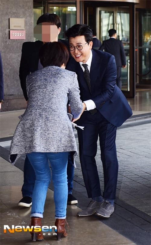 MC Kim Sung Joo có mặt từ khá sớm. Anh cũng là MC chủ trì của lễ cưới.