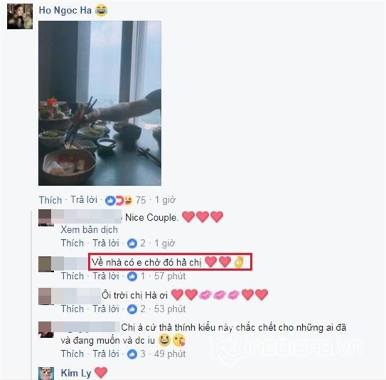 Mới đây, Kim Lý đăng ảnh mặc vest lịch lãm khi tham gia một sự kiện. Ngay ở dưới tấm hình điển trai này, nữ ca sĩ Hồ Ngọc Hà đã để lại bình luận là bức hình đi ăn cùng một người đàn ông giấu mặt, chỉ lộ tay. Sau đó, Kim Lý nhanh chóng thả tim kèm theo bức hình "Nữ hoàng giải trí" mặc đồ giản dị ngồi bên chiếc bàn ăn khá giống với chiếc bàn trong ảnh Hà Hồ để lại ở phần bình luận. Do đó nhiều người đoán Hà Hồ và Kim Lý đi ăn cùng nhau.