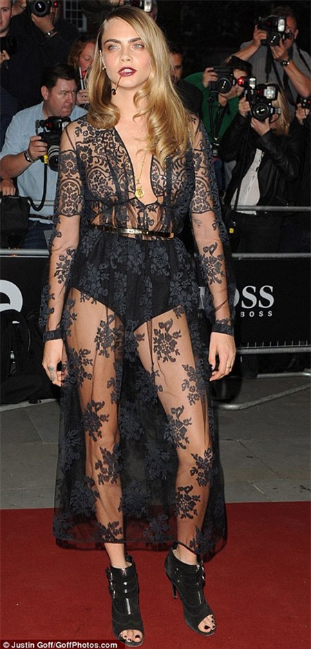 Chân dài Cara Delevingne diện chiếc váy đen "xuyên thấu" |