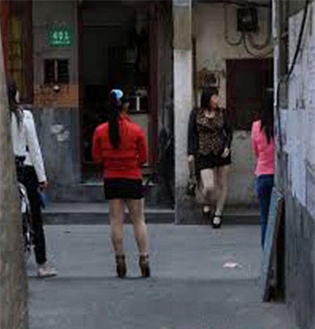 Mại dâm đứng đường tại một khu ổ chuột ở Đông Quản. |