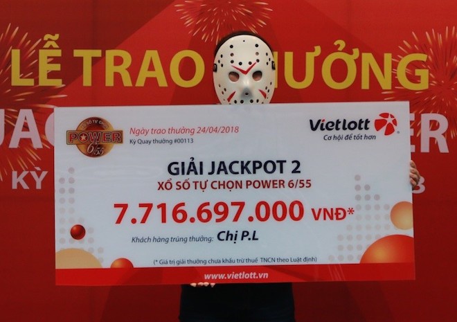 Trong khi đó, chi nhánh TP.HCM đã trao thưởng cho chị P.L (ngụ tại TP.HCM). Đây là khách hàng may mắn trúng jackpot 2 tại kỳ quay 113 cũng của Power 6/55, với giá trị hơn 7,7 tỉ đồng.