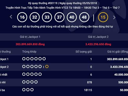 Tại kỳ quay mở thưởng số 119, giải Jackpot 1 đã bất ngờ "nổ" sau 5 tháng chờ đợi. Dãy số trúng thưởng là 16-32-33-37-40-48.