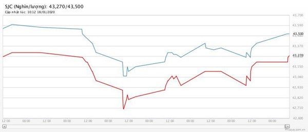 Giá vàng giảm do ảnh hưởng của thị trường thế giới. Các phiên sau đó, giá vàng vẫn chưa có nhiều bứt phá. Ngày 16/1, giá vàng miếng trong nước được Tập Đoàn Vàng bạc đá quý Doji niêm yết ở mức: 43,15 triệu đồng/lượng (mua vào) và 43,35 triệu đồng/lượng (bán ra). Công ty vàng bạc đá quý Sài Gòn niêm yết giá vàng SJC ở mức 43,00 triệu đồng/lượng (mua vào) và 43,37 triệu đồng/lượng (bán ra).