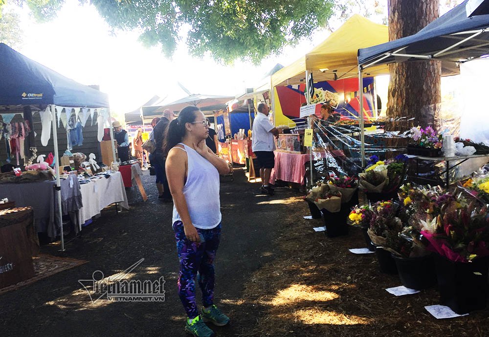 Chúng tôi là người khách kế tiếp. "Chú thích ăn gì con làm cho...", câu chào bằng tiếng Việt làm chúng tôi hết sức bất ngờ. Trên đất Australia muốn nghe được một câu tiếng Việt không khó nhưng ở đây, chợ phiên của Brisbane city, hầu hết các gian hàng đều của người bản xứ.