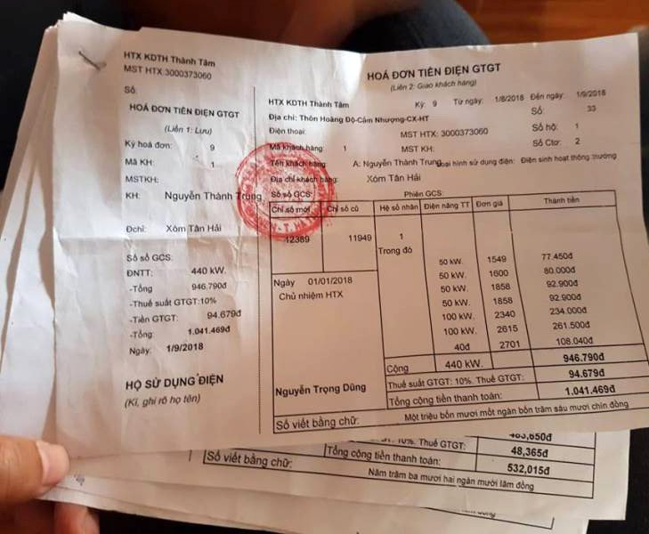 Ngày 13/9, chị Hoa đã viết phản ánh lên Facebook cá nhân kèm theo hóa đơn tiền điện. Sau đó, nhiều người dân trong xóm vào bình luận Facebook của chị thì các hộ dân này cũng bị HTX Thành Tâm gửi thông báo tháo đồng hồ, tạm cắt điện.