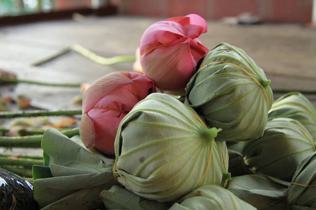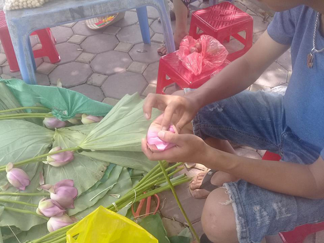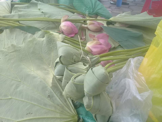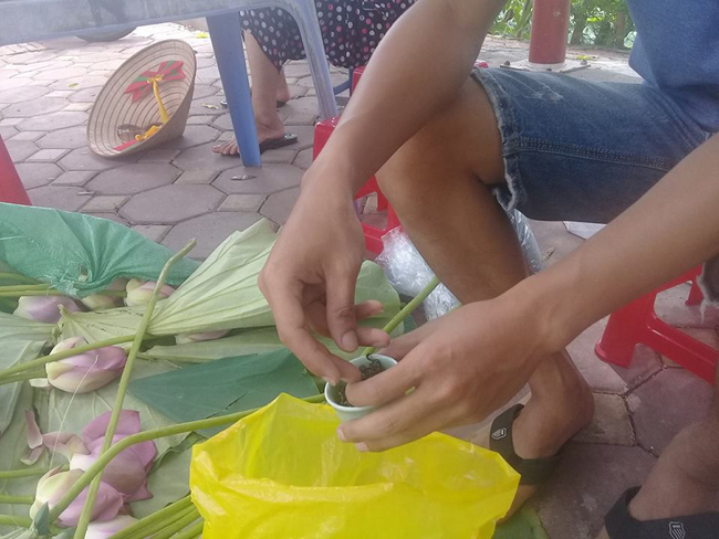 Mỗi bông sen ướp trà được bán với giá 40.000 – 50.000 đồng.