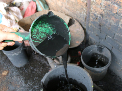 - Mấy tháng trước, có một người phụ nữ đi mua tiêu bụi tới chỉ vào đống thải loại gia đình phơi trước cửa hỏi mua với giá 3.000 đồng/kg. Sau đó gia đình đã ủ các tạp chất vào một góc kho để chuyển màu đen như đống tiêu mà người phụ nữ hỏi mua. Tuy nhiên, ủ được một thời gian, do phải tưới nước nên bức tường bị sập, lún nền. Trong một lần cầm viên pin, chồng tôi thấy tay bị nhuộm đen nên mới nghĩ ra cách mua pin về nhuộm tạp chất cho chuyển thành màu đen để bán cho người phụ nữ hỏi mua.