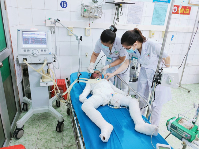 Thầy thuốc ưu tú, Bác sĩ CKII Đào Ngọc Việt – Trưởng khoa Cấp cứu cho biết: 3 bệnh nhi bị bỏng rất nặng, trong tình trạng nguy kịch, kíp trực đã nỗ lực cấp cứu, điều trị tích cực, tuy nhiêm bé 9 tuổi và bé 5 tuổi đã không thể qua khỏi.