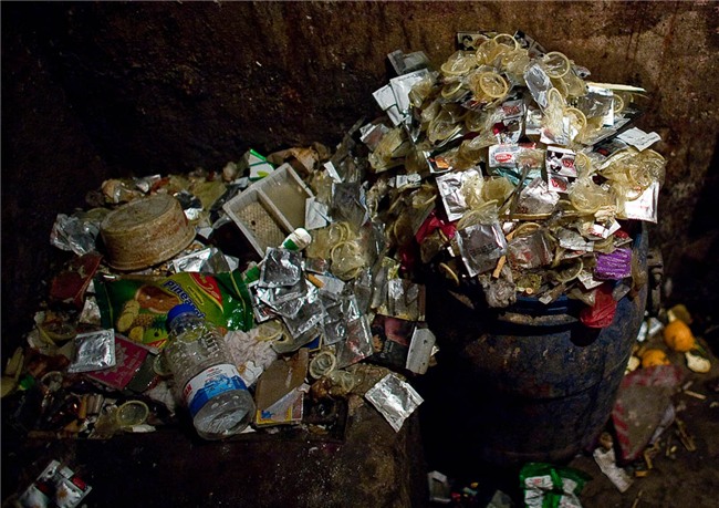 Bao cao su ngập tràn nhà thổ.