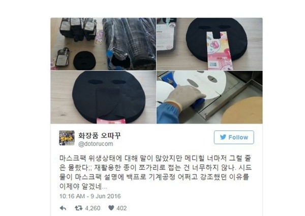 Nguồn tin được tiết lộ từ một người dùng có tên Dvaonline22 trên trang mạng Reddit về làm đẹp, tự giới thiệu mình là một phụ nữ đang sống tại Seoul, từng có thời gian làm việc trong ngành công nghiệp mỹ phẩm. Cô tiết lộ rằng tất cả những chiếc mặt nạ giấy từ các thương hiệu mỹ phẩm lâu đời nổi tiếng, thậm chí những thương hiệu đã được xuất khẩu hàng hóa ra toàn cầu, đều sử dụng nhân công là những người nhân công làm việc tại gia, như các bà mẹ nội trợ, phụ nữ bán hàng tạp hóa, sinh viên làm việc trong thời gian rảnh rỗi… gấp và xếp những miếng mặt nạ bằng tay không.