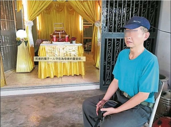 Một người đàn ông 40 tuổi đến từ Tangkak, bang Johor, Malaysia được phát hiện đã sống với xác chết của mẹ suốt 4 tháng. Tờ China Press đưa tin, người đàn ông này được chẩn đoán mắc bệnh trầm cảm và anh là người duy nhất sống cạnh mẹ sau khi bố anh ta qua đời trong một vụ tai nạn từ nhiều năm trước.