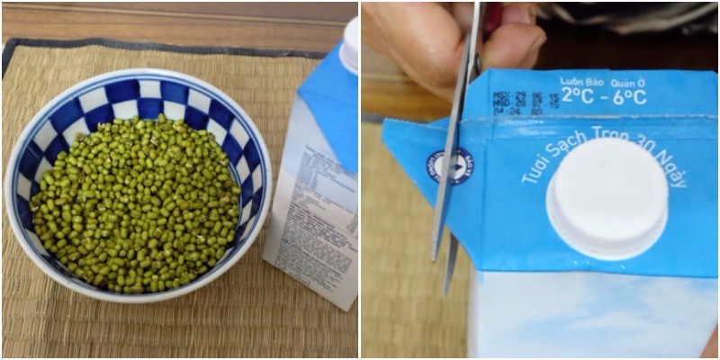 Cách làm giá đỗ bằng vỏ hộp sữa tươi