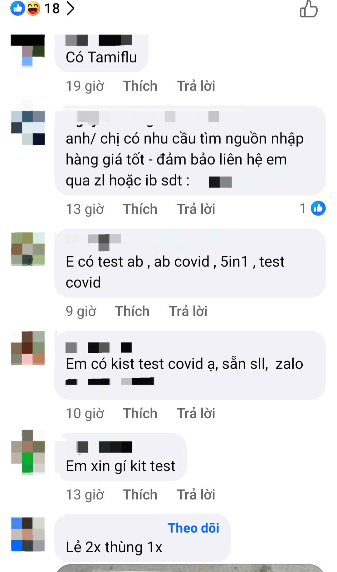 Theo ghi nhận của phóng viên, "chợ thuốc" online bắt đầu nhộn nhịp hơn. Chỉ cần một người có nhu cầu mua kit test hoặc thuốc điều trị COVID-19, ngay lập tức sẽ có rất nhiều tài khoản vào bình luận.