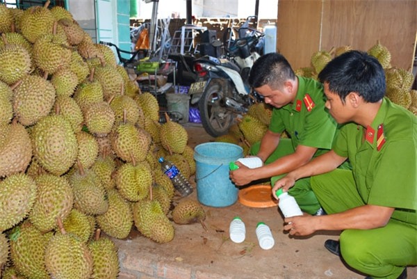 Trước đó, Phòng Cảnh sát nhận được tin báo và cử cán bộ đóng giả người đi mua sầu riêng, đột nhập vào cơ sở bắt quả tang tại trận cơ sở này đang có hành vi sử dụng hóa chất để nhúng sầu riêng. Tại hiện trường, có khoảng 2 tấn sầu riêng, trong đó khoảng 1,2 tấn vừa được nhúng hóa chất xong. Vụ việc được lập biên bản tại chỗ.