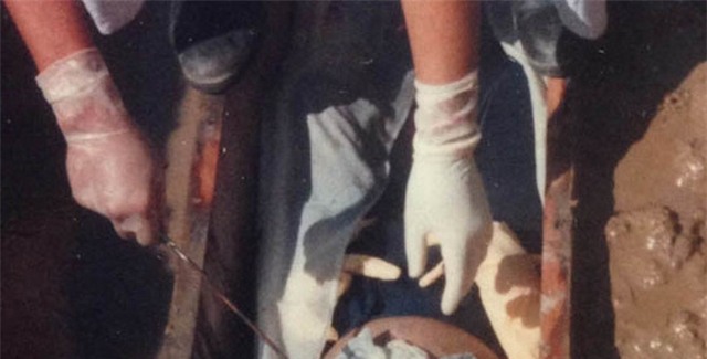 Ông Tiếp xuống tận mồ để mổ tử thi (Ảnh NVCC) |