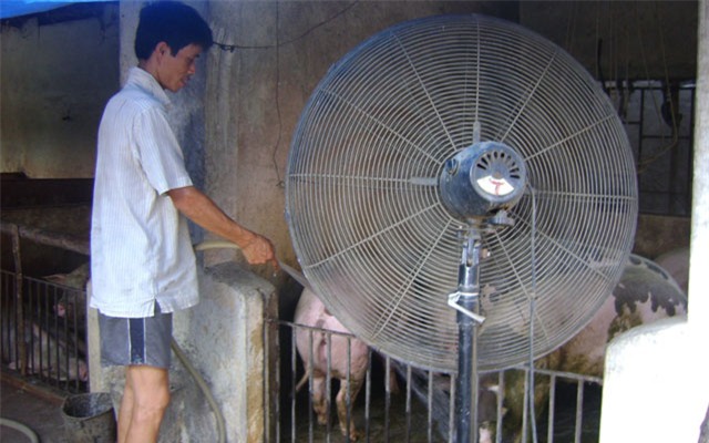 Anh Trần Thế Toàn, chủ trang trại hiện đang nuôi hơn 25 lợn nái và gần 300 lợn thịt ở xã Nhật Tân (Kim Bảng, Hà Nam) cho biết: “Để phòng những đợt nắng nóng, tôi đã đầu tư một hệ thống phun mưa bằng máy bơm hơn 30 triệu đồng và tăng cường thêm quạt cây, quạt treo tường, nhờ đó nhiệt độ trong chuồng giảm xuống khoảng 5 – 7 độ C so với ngoài trời, với ngưỡng này lợn vẫn khỏe và phát triển tốt”.