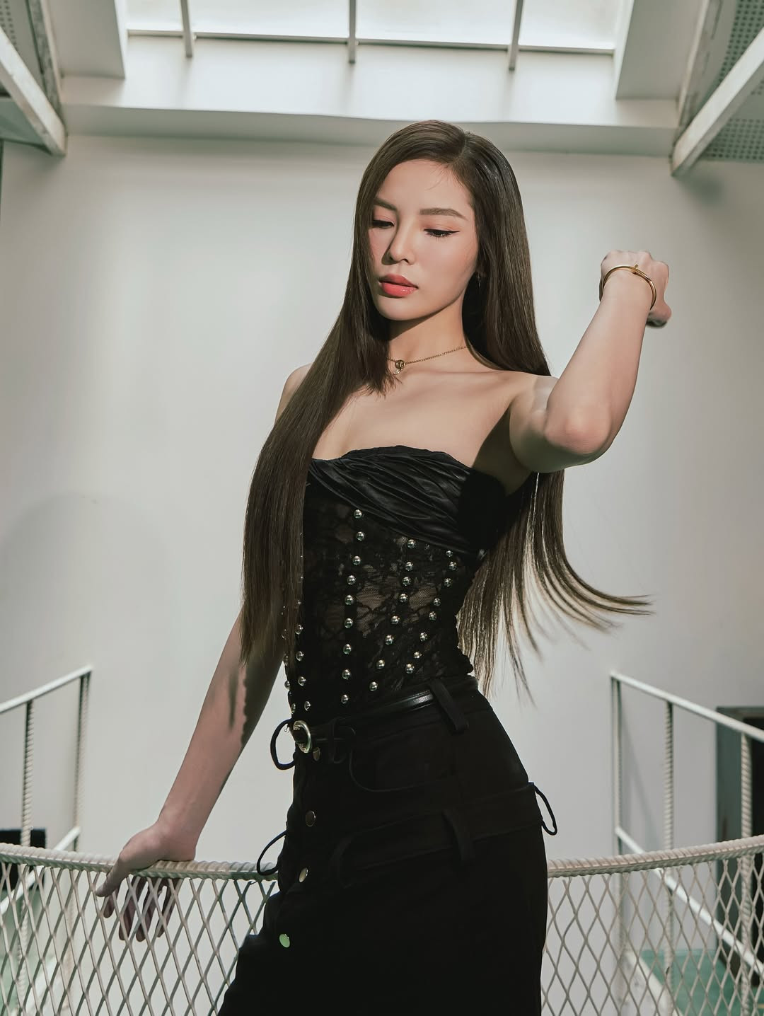 Xuất hiện tại event, Kỳ Duyên gợi cảm với set đồ đen gồm áo cúp ngực phối quần ống suông hack dáng. Trong khi đó, Thiên Ân lại kín đáo với bộ đồ tông màu be.