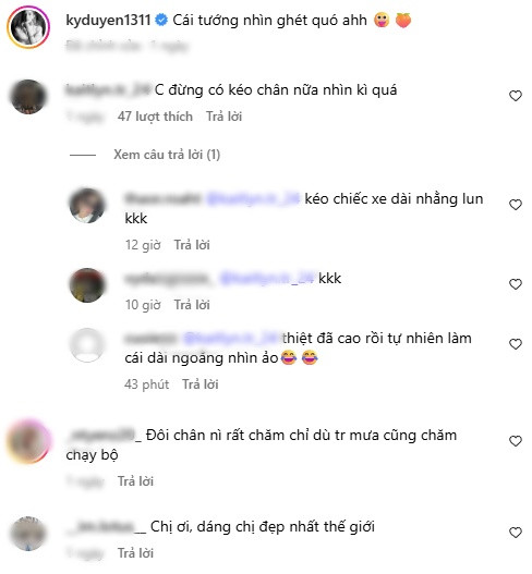 Theo đó, netizen để lại bình luận: "Chị đừng kéo chân nữa nhìn kì quá", "Đã cao rồi tự nhiên làm cái chân dài ngoằng nhìn ảo", "Kéo chiếc xe dài nhằng"...