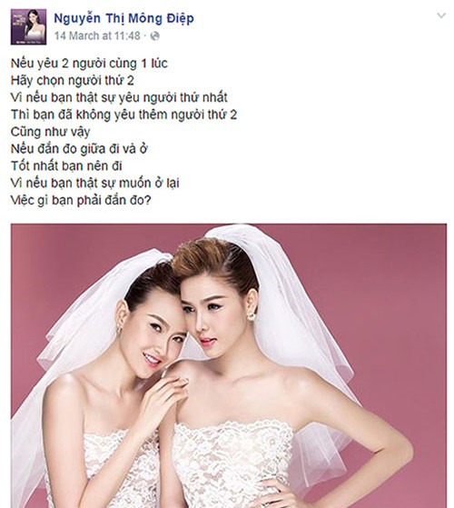 Cách đây mấy ngày, Kỳ Hân đã đăng lên trang cá nhân ảnh chụp cô dâu cùng một người mẫu khác với dòng chú thích khá "khó hiểu" khiến nhiều người hâm mộ chú ý.