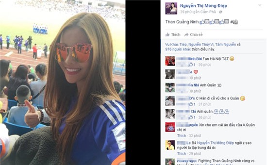 vui vẻ đăng tải hình ảnh mặc áo số, hào hứng ra sân cổ vũ cho đội Than