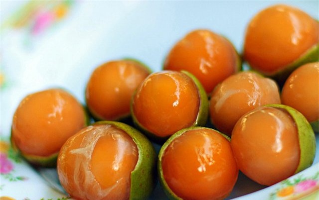 Nhiều người ví loại chanh ruột nghệ này trông giống như những trái xoài nhỏ chưa chín và có cấu tạo như những quả trứng luộc vì phải bóc ra và thưởng thức.