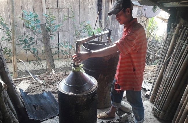 Tại thôn 2, trưởng thôn Nguyễn Văn Tới cùng vợ tỏ ra ‘thức thời’ khi lập cơ sở nấu rượu mi ni cung cấp cho cả thôn. Nhờ đó, hai vợ chồng vừa không mất tiền mua rượu hàng ngày lại có thêm thu nhập. “Nhu cầu bà con cao quá, rượu nấu ra không kịp mà bán”, ông Tới lắc đầu.