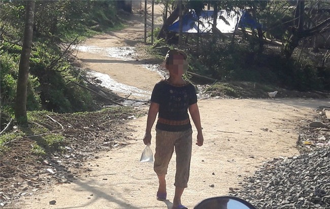 | Bà T. đi mua rượu về uống. Cảnh tượng này đã quá quen thuộc ở Trà Don, không chỉ bà T. mà rất nhiều phụ nữ khác ở đây nghiện rượu |