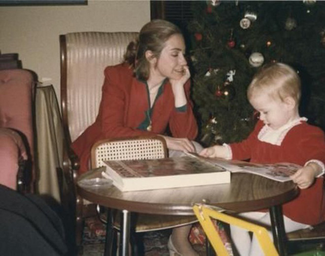 Bà Clinton đọc sách cùng con khi còn trẻ.