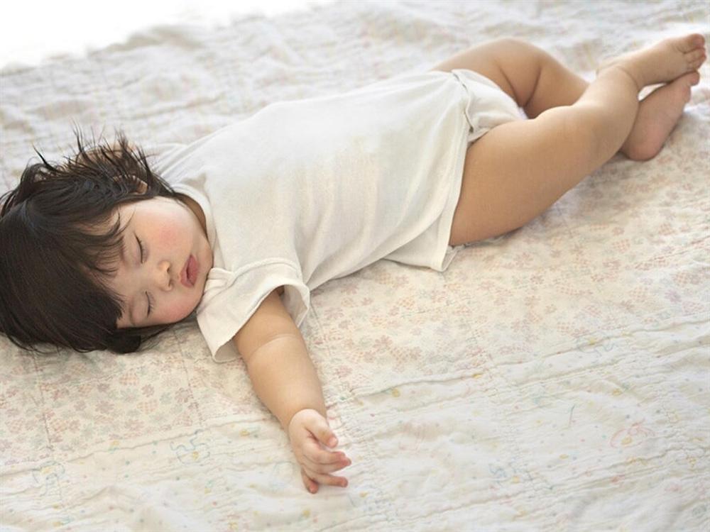 Em bé đi ngủ muộn, 9 giờ sáng hôm sau mới dậy, bỏ qua giờ tắm nắng sớm nên không cao, không hồng hào khỏe mạnh, tóc chẳng mọc được. (Ảnh minh họa)
