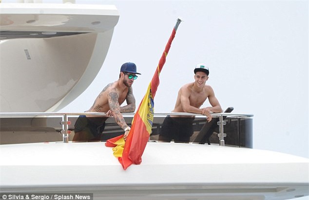 | Dàn sao Real thuê hẳn một du thuyền hạng sang để phục vụ kỳ nghỉ. Sergio Ramos không quên cắm lên thuyền lá cờ có biểu tượng của đội bóng Hoàng gia. |