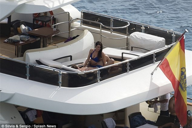 | Những cử chỉ thân mật của Ramos với cô bạn gái hơn 8 tuổi Pilar Rubio trên tầng 2 của du thuyền. |