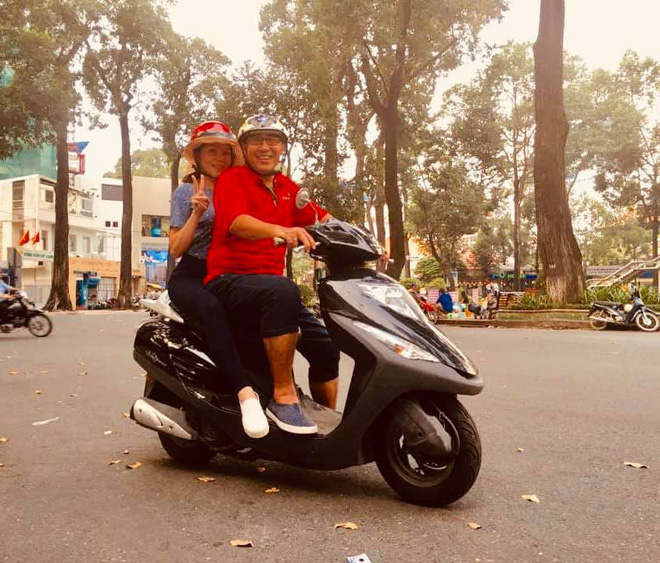 Đăng kèm lời nhắn là hình ảnh Quyền Linh đèo bà xã trên những chiếc xe đơn sơ như xe đạp, xe điện, xe máy, xích lô.