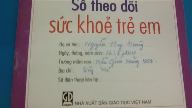 Sổ theo dõi sức khỏe của cháu Hoàng thể hiện ngày tháng năm sinh. |