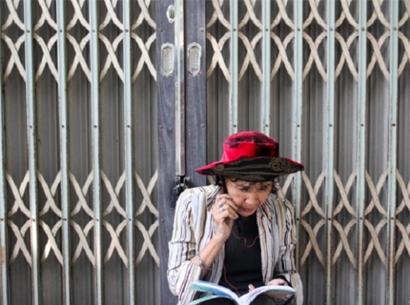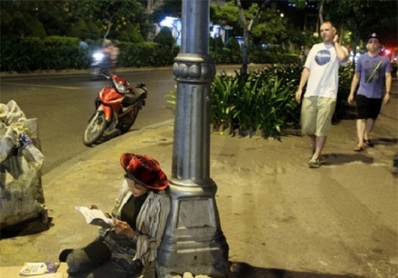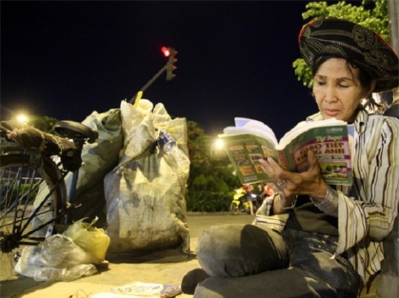 Hơn nửa năm nay, từ tối đến đêm, người dân, du khách đi ngang qua góc đường Phạm Ngũ lão - Tôn Thất Tùng (quận 1, TP.HCM) đều bắt gặp hình ảnh người phụ nữ nhặt ve chai này. Chị chống xe bên vệ đường, ngồi dựa cột đèn, chăm chú đọc sách. Người dân ở đây cho biết, cứ thấy chị này ngồi đọc, học ở đây từ 6h chiều cho đến gần 1h sáng mới đạp xe đi.