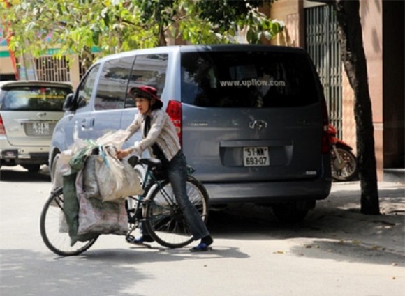 Người phụ nữ ấy tên Ngô Thị Mỹ Hạnh (sinh năm 1966, ngụ quận 4, TP.HCM). "Tôi đang học anh văn, tối nào cũng phải học đến 1h mới về", chị Hạnh giải thích. Công việc chính của chị là làm nghề nhặt ve chai. Nhưng khi bắt chuyện với người phụ nữ này, mới thấy thật không giống như những người làm ve chai khác.