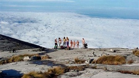 Một số du khách đã cố tình chụp ảnh khỏa thân trên núi Kinabalu (Ảnh: Daily Mail) |