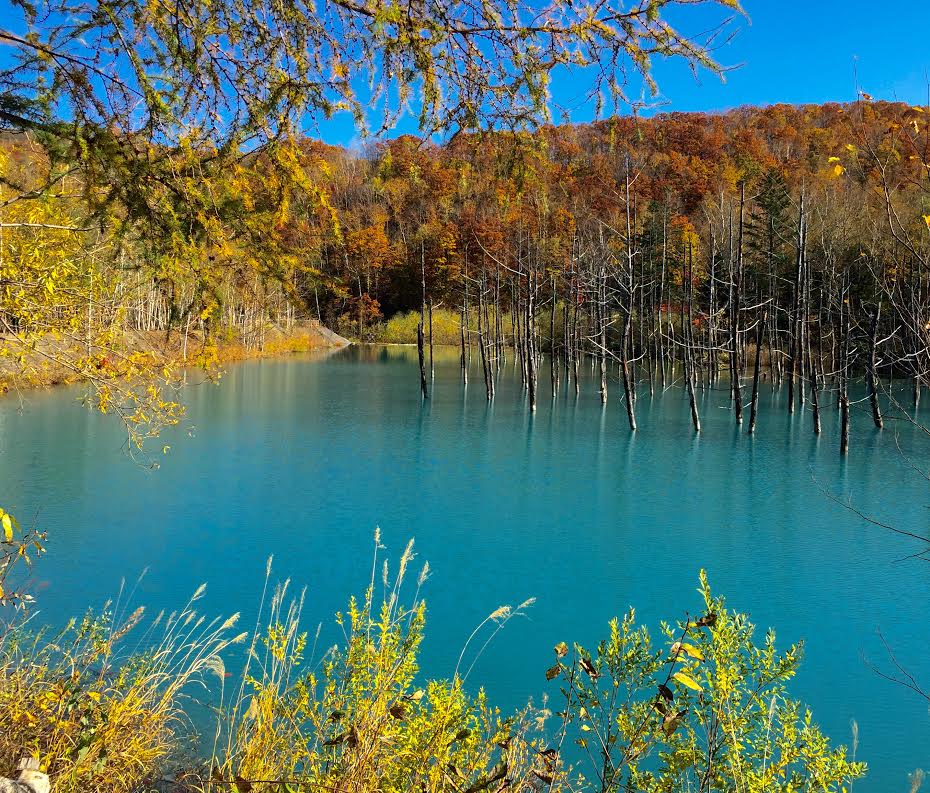 Trong chương trình du lịch đến Asahikawa, chúng tôi đã được giới thiệu về hồ xanh có tên gọi là hồ AOI. Đang là mùa thu và chuẩn bị bước sang mùa đông, thời tiết khá lý tưởng để du khách tản bộ vào một khu rừng nằm khuất trong thị trấn Biei và cùng ngắm mặt nước hồ có màu xanh kỳ lạ. Hòa với màu lá cam, lá đỏ của khu rừng chung quanh, hồ AOI càng thêm nổi bật bởi màu sắc biến đổi đặc biệt từ thiên nhiên.