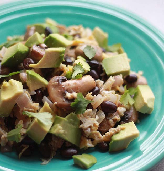 Bơ trộn nấm, đậu và trứng bác