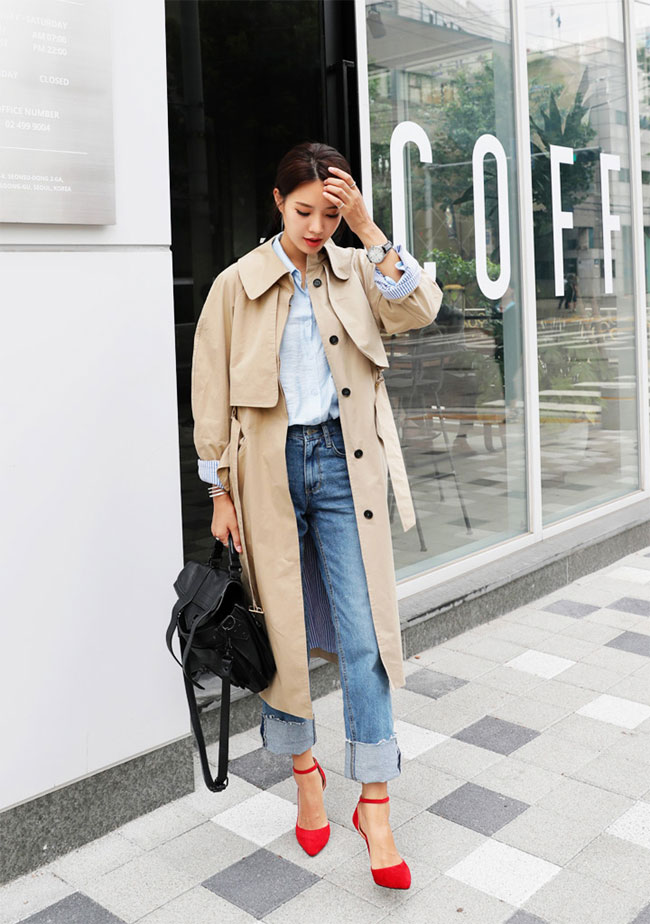 Áo có đai thắt eo sẽ cố định khung người bạn thay vì những chiếc áo khoác rộng sẽ càng làm lộ rõ khuyết điểm
