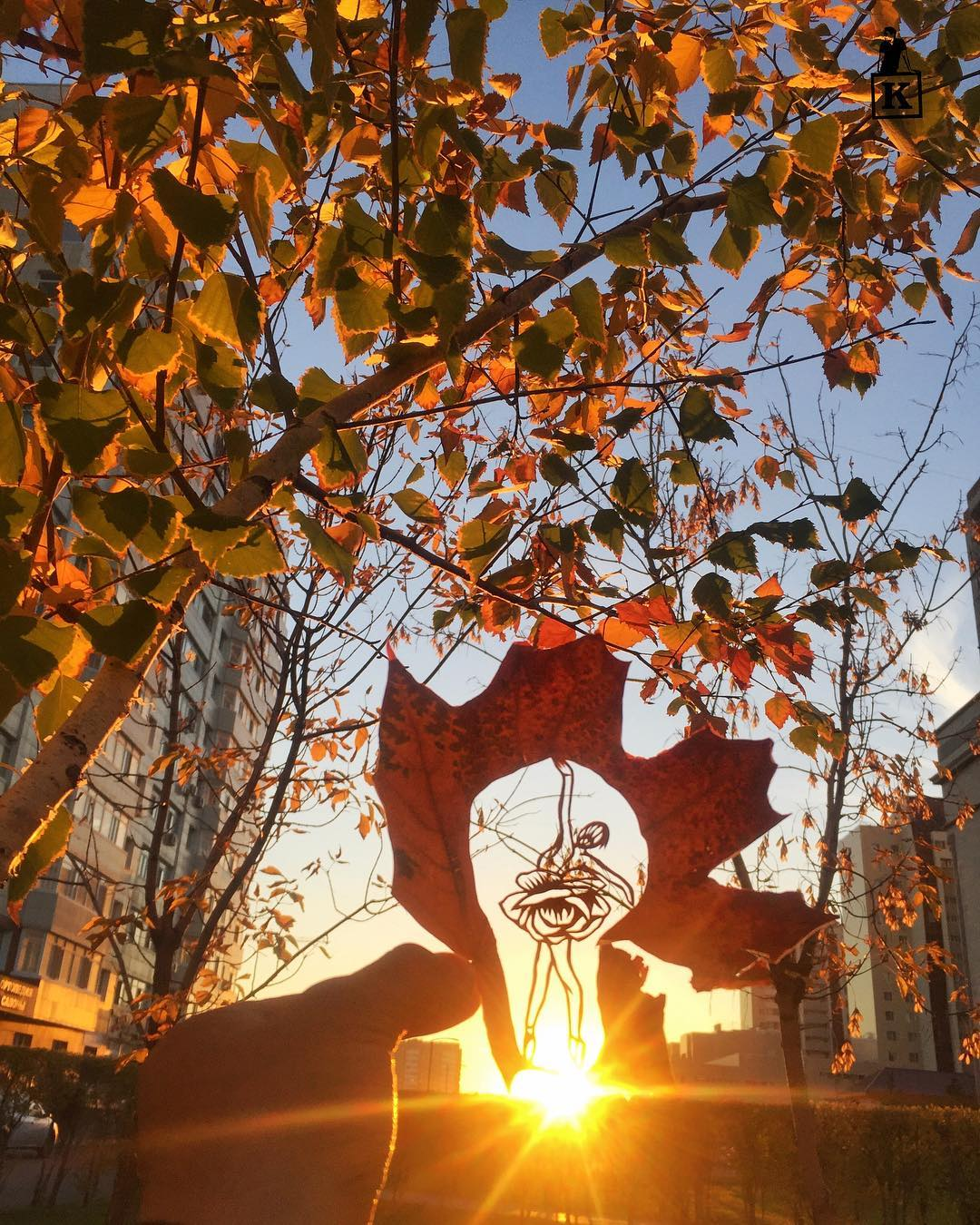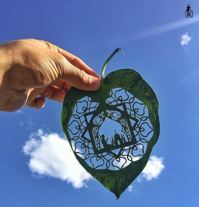 Nếu như Trung Quốc nổi tiếng khắp thế giới với nghệ thuật cắt giấy thì ở Kazakhstan cũng có môn nghệ thuật cắt tỉa lá ảo diệu không kém. 5 năm trước, nghệ sĩ người Kazakhstan Kanat Nurtazin đã bắt đầu dự án “100 công cụ hội họa”, trong đó lá cây là công cụ sáng tác yêu thích nhất của anh.