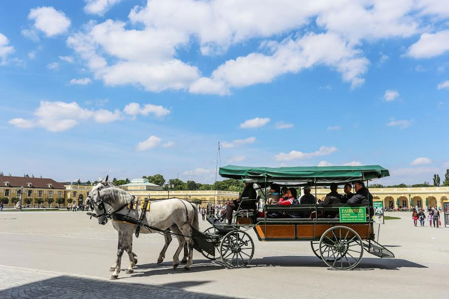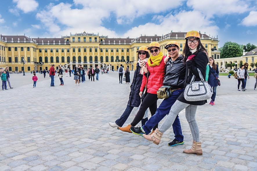 Gọi là mùa hè nhưng thời tiết ở các nước châu Âu cũng khác biệt nhau, có nơi ấm áp, có nơi nắng nóng và cả lạnh giá. Buổi sáng đến Vienna, nhóm chúng tôi đã vào tham quan Cung điện Schonbrunn, di sản văn hóa tuyệt đẹp của nước Áo. Đây là cung điện mùa hè, thế nhưng lúc chúng tôi đến nhiệt độ chỉ khoảng 10 độ C kèm theo gió nên mọi người co ro đi tìm nơi sưởi ấm. Cung điện Schonbrunn gồm 1.441 phòng và có một vườn hoa rộng lớn với những kiến trúc tuyệt đẹp. Để tham quan chừng ấy phòng du khách phải mất cả buổi. Chúng tôi xếp hàng mua vé tham quan với thời gian khoảng 90 phút, nhưng được đặt hẹn sau hai giờ mới tới lượt vào tham quan. Dòng người trật tự lần lượt xếp hàng, giữ yên lặng và không được phép chụp ảnh, quay phim bên trong cung điện.