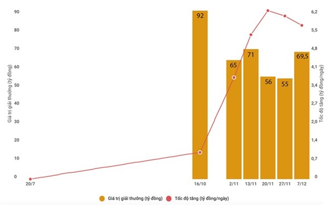 Người thứ hai trúng vào ngày 2/11 là ông A. ở Đồng Nai với số tiền thưởng trên 65 tỷ đồng. Ngày 13/11, một thợ hàn quê Quảng Ngãi vào TP.HCM lập nghiệp đã trúng thưởng 71 tỷ đồng.