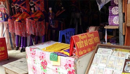 Dịch vụ đổi tiền lẻ ở đền ông Hoàng Bẩy (Lào Cai). |