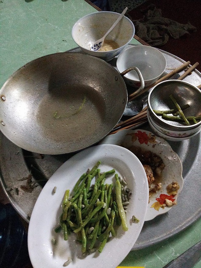 Đọc qua chia sẻ của chị, ai cũng cảm thấy xót xa và cay đắng dù chị đang bảo là "hạnh phúc vô biên, hạnh phúc vô bờ bến". Nhìn mâm cơm thì lại càng không biết nói gì. Chắc chắn nếu chị không giới thiệu trước thì chẳng biết đâu là canh bí đỏ, đâu là thịt kho đậu nữa bởi vì thịt không thấy mà bí đỏ cũng không. Nhìn vào chỉ thấy lõng bõng nước là nước. Hay như đĩa mà chị N.N.H. gọi là cá rán cũng không hề thấy cá đâu, chỉ thấy vài miếng vụn đen đen, nhỏ nhỏ.
