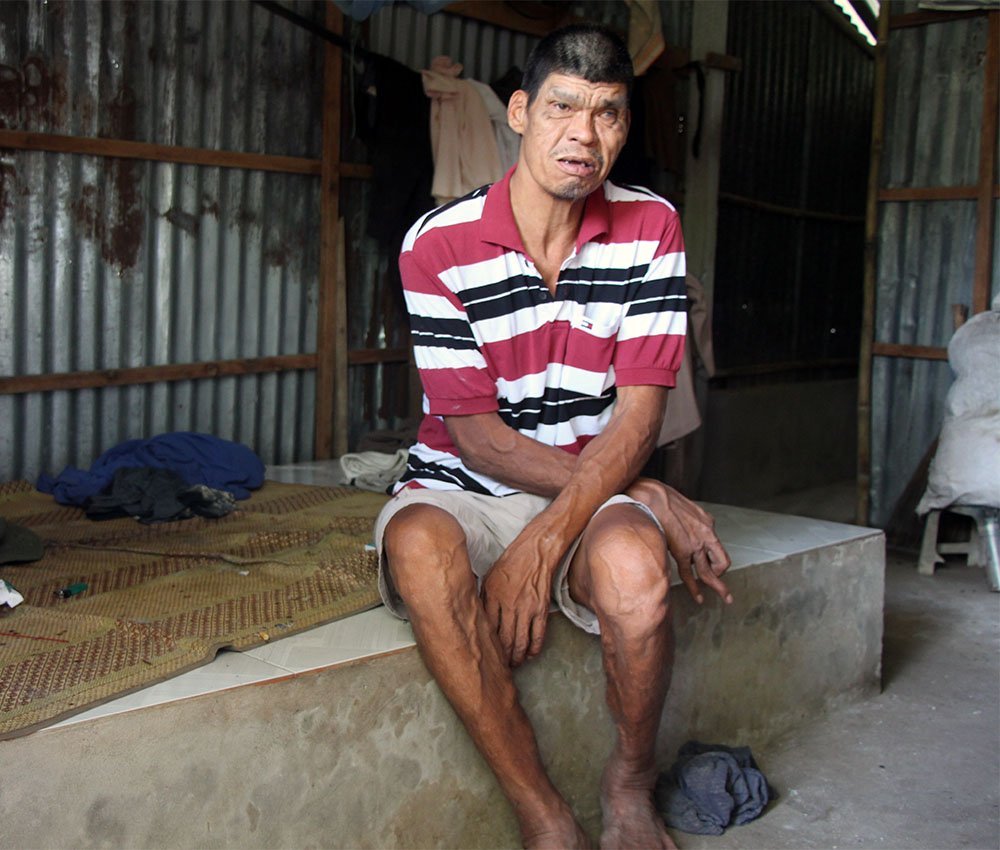Trước đây, thấy con trai đi chân không bị vật nhọn đâm, cắt chảy máu chân, ông Hoá thấy tội nghiệp nên thuê thợ đến nhà cắt vỏ máy cày làm dép nhưng chỉ mang được vài ngày là hư. Từ đó đến nay ông Y đều đi chân trần.